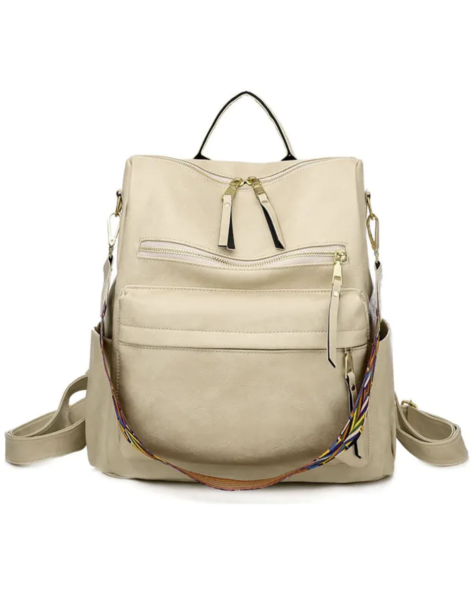 Crafted from high-quality vegan leather (PU), this backpack features:
