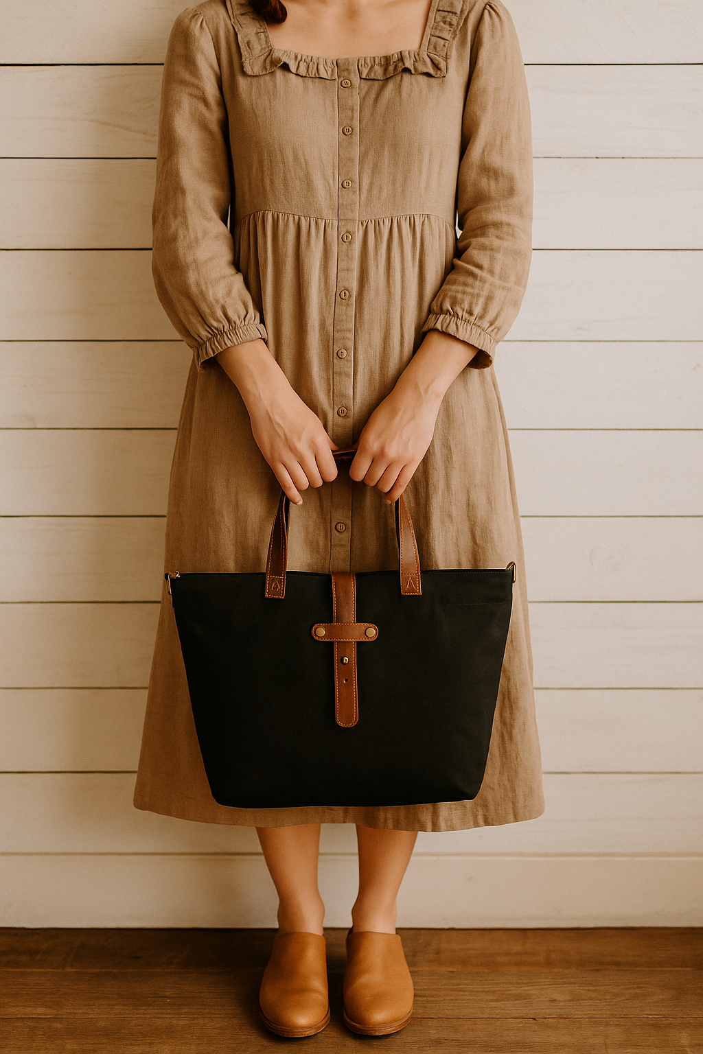 The Duskend Pasture Tote is the most dramatic of the bunch—and perfect for those who want a touch of edge with their farmhouse charm. Crafted in rich black waxed canvas with deep brown leather trim, it’s elegant, durable, and ready for anything.