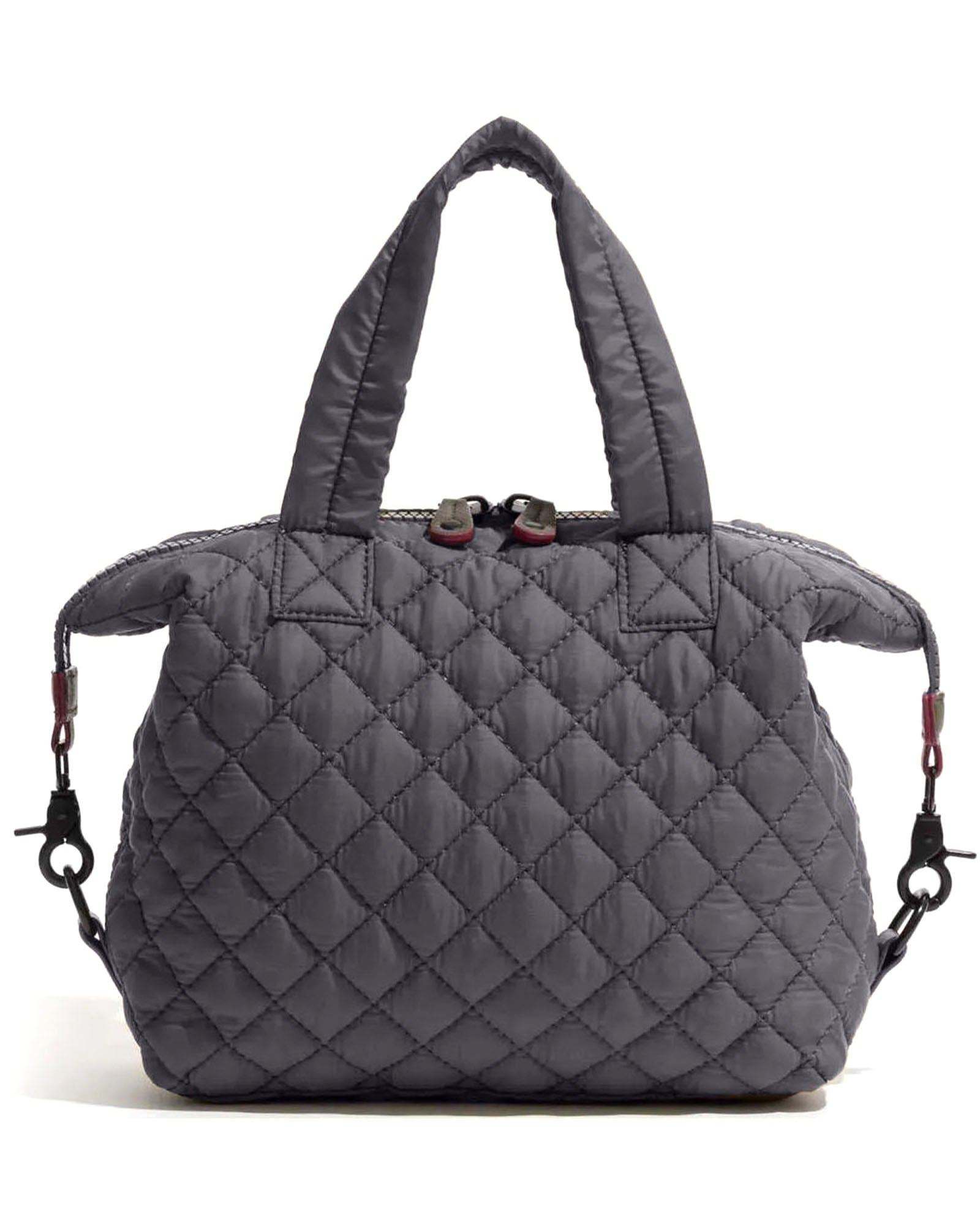 • Adjustable crossbody strap + top carry handles